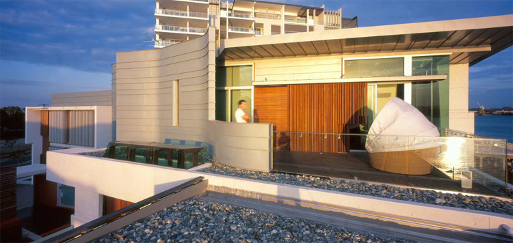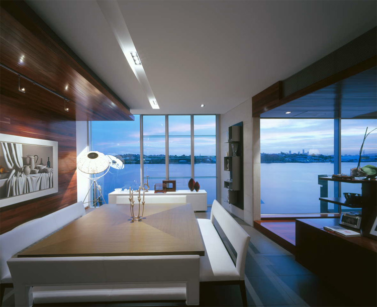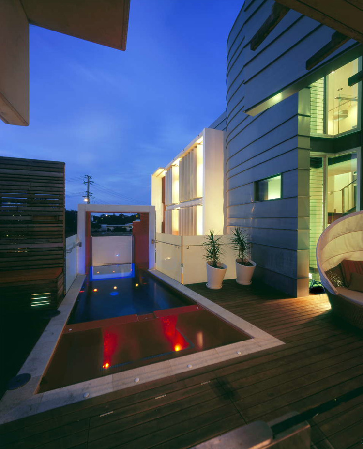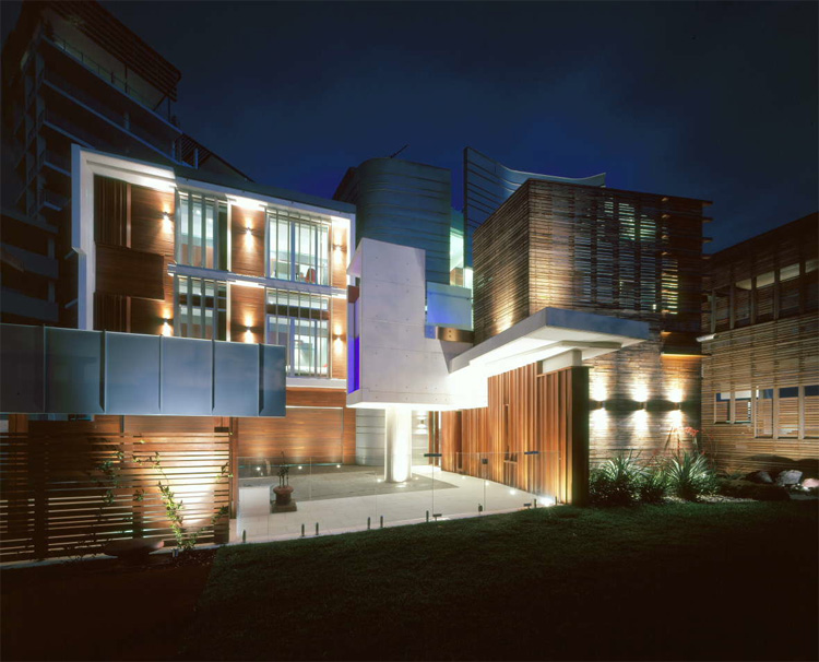 Balaam house is a private residence on a urban site which is designed in harmony with surroundings and the weather in the region. It is built with using zinc aluminium, concrete, rich timbers and raw battening. Even though this combination of materials isn’t quite usual for other regions it’s very popular in warm countries. Besides capturing river views from different sides, the house also has an awesome private garden which is great play area for children and to relax around a fire pit. Another unique feature of the project is cantilevered pool which provides an eave for the main entrance with its showpiece, glass end. Even though the house hasn’t typical modern design, in this region it looks quite modern. Like many other houses in Australia it also implements “green” and saving technologies like rain water harvesting, solar hot water, passive “heat stack” cross ventilation, solar control glass and so on. [Arkhefield]